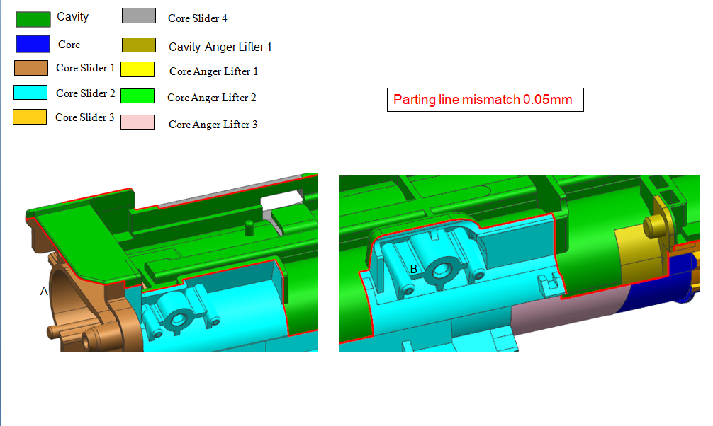 • Parting line positions.